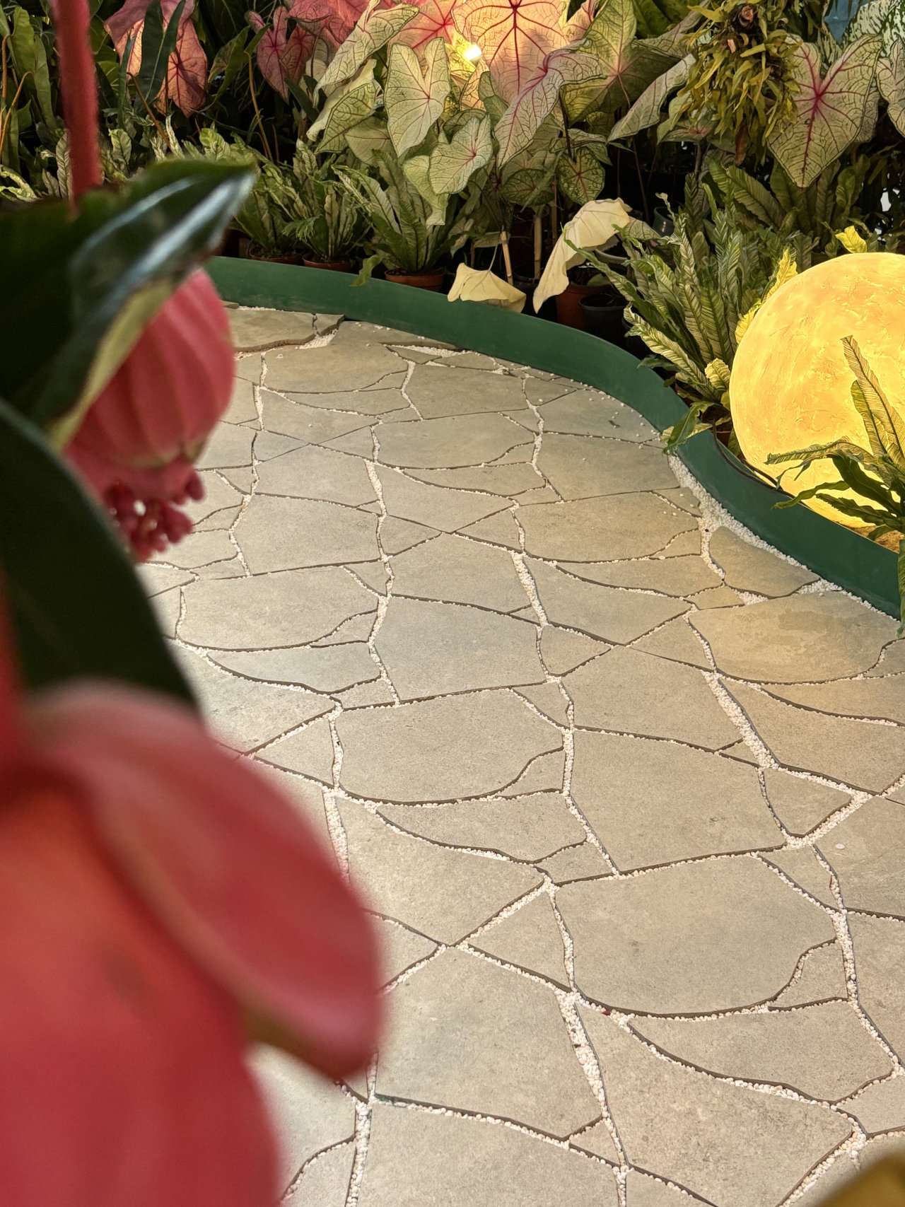 而在黄晓雷老师策展的【晓花园】里,“花园生活”的主题被赋予了新的生机与活力。花园步道采用岩域自由混铺,个性化的混铺设计不仅提升了空间的品质感,更让瓷砖从传统的装饰材料升级为花园的共创者,为人们打造出一个充满诗意与美好的花园生活空间。
